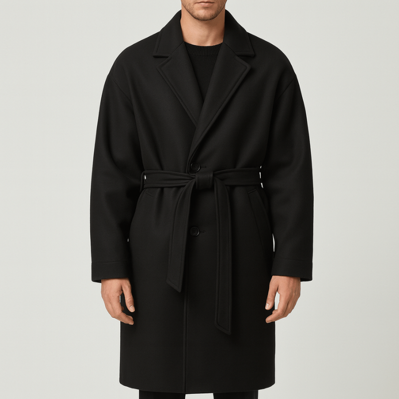 Dieser lange Herrenmantel bietet eleganten Stil, angenehme Wärme und eine moderne Silhouette – perfekt für kalte Herbsttage und stilbewusste Winter-Outfits.